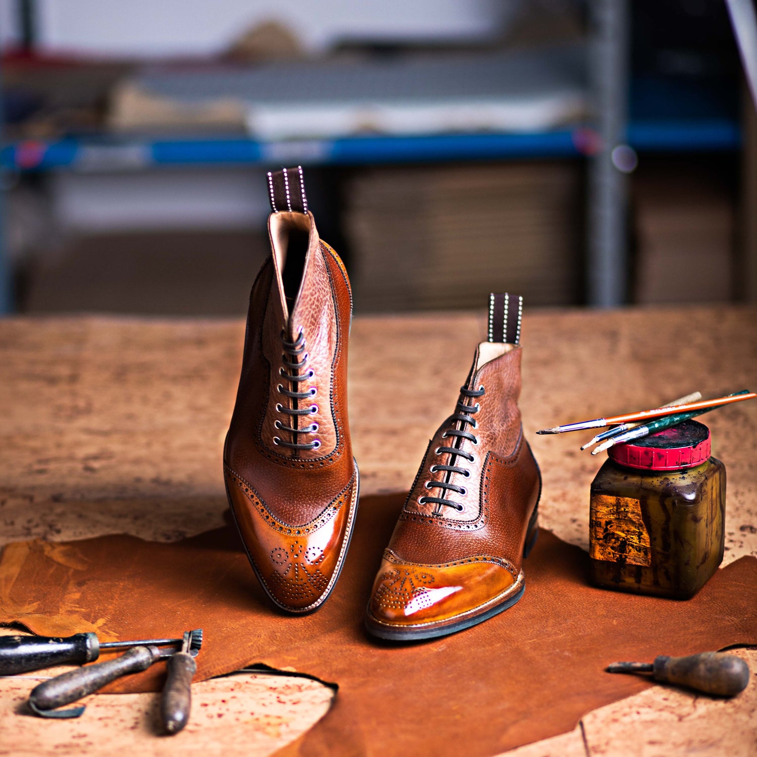 The Saint Crispin’s signature models for Boots are: Mod. 401 presenting a long wing full brogue Oxford boot which can be executed in various combinations of colors and upper leathers. Mod. 403S, presenting our plain elegant Derby Boot which can also executed with a straight toe cap.