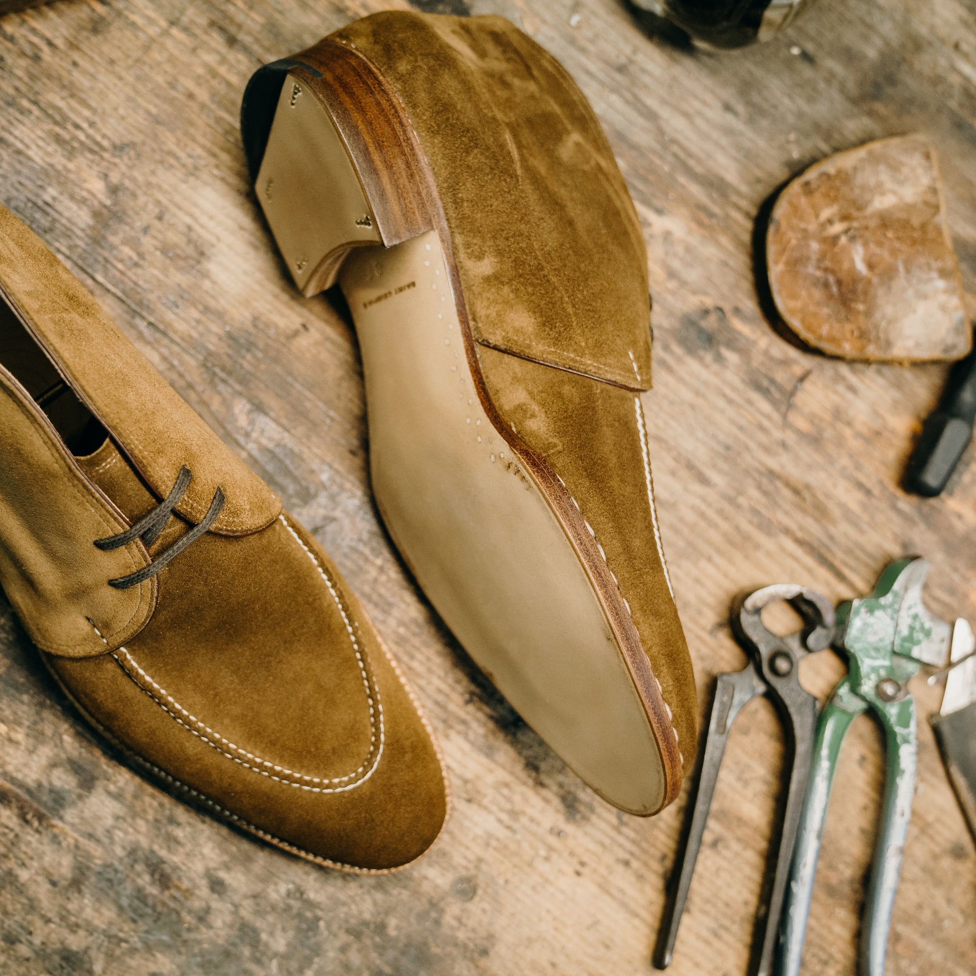Chukka boots with handstitched Norwegian apron